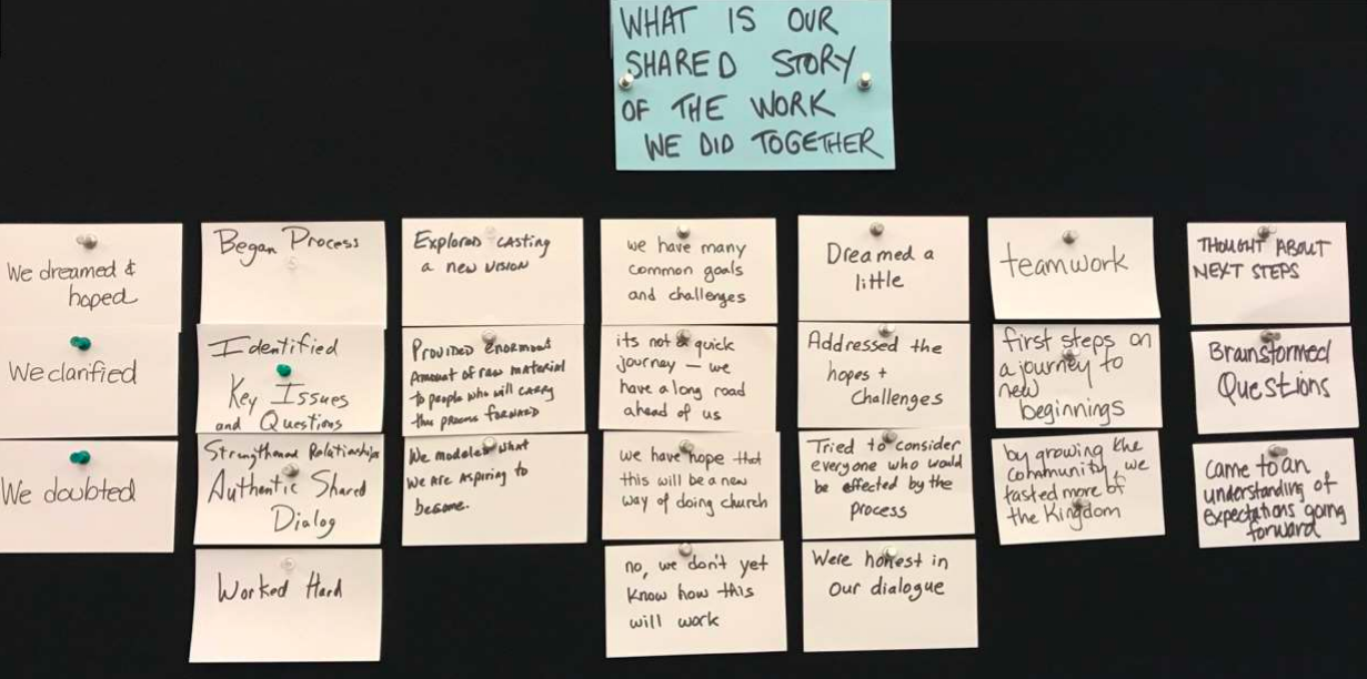 So far, possibilities for collaboration have been discussed at two meetings that included participants from both dioceses—a joint clergy conference held in mid-September at the Chautauqua Institution, and the compression planning meeting in Erie. Participants generated hundreds of initial questions, organized them by theme and identified those most important to address.